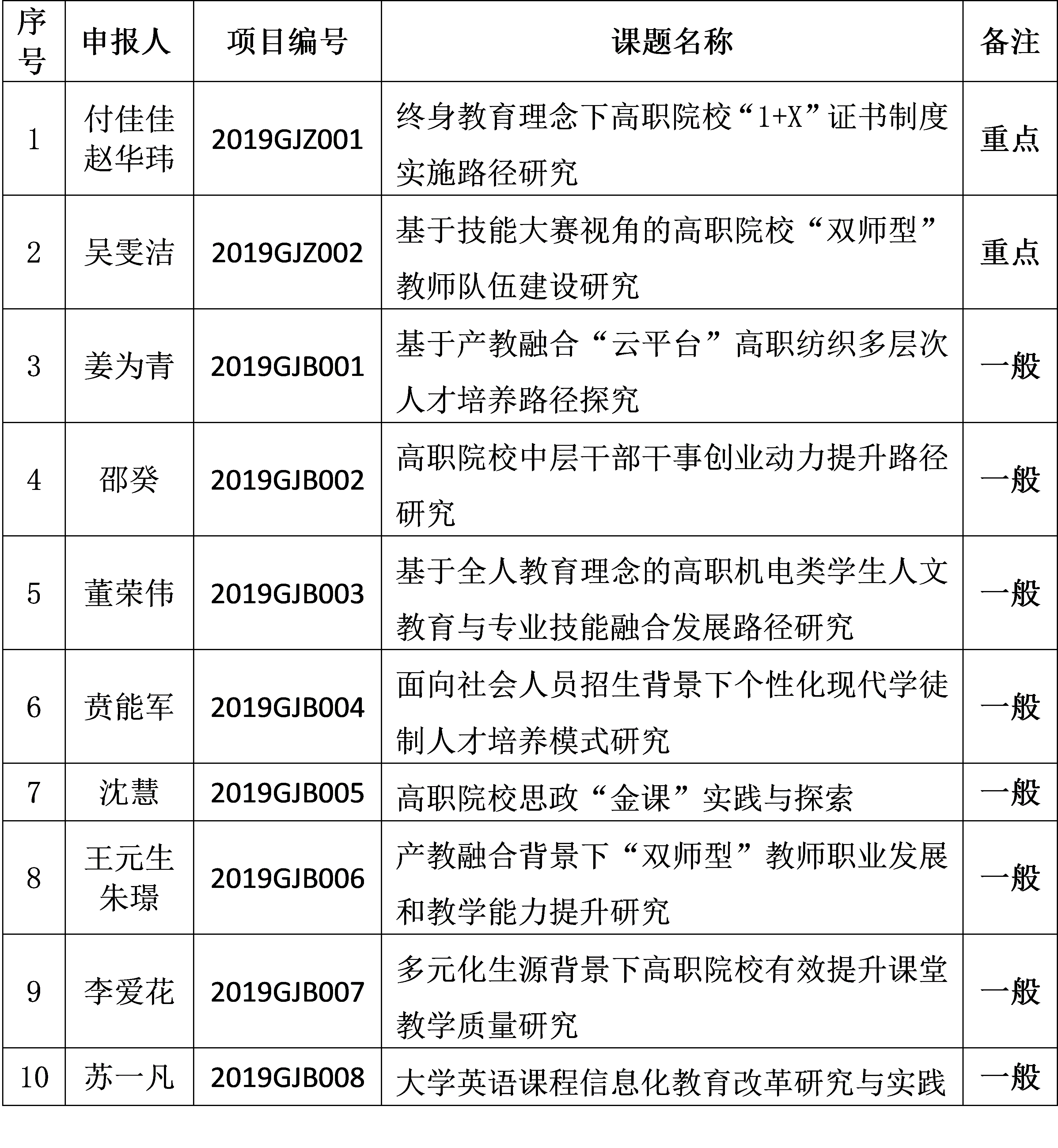盐城工业职业技术学院2019年校本研究课题汇总表